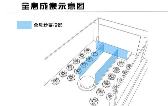 紗幕具有良好的透視性,離遠處看仿佛是在空氣中成像,結(jié)合宴會廳270度立體成像的3D效果,能夠?qū)崿F(xiàn)雙重視覺效果。在全息宴會廳中內(nèi),全息成像可用于大型舞臺演出、各類發(fā)布會、喜宴等等。